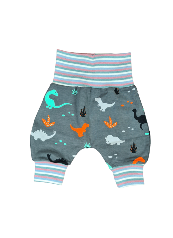 Eine bequeme Baumwolljesey Pumphose für Frühchen in größe 44 mit bunten gesreiften Bündchen oder mit Anthrazit Krone Melierten Bündchen.