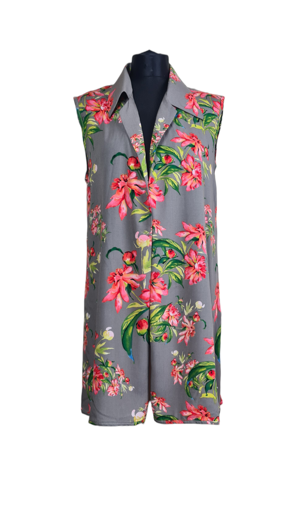 Tunika aus Viskose in Tauben-grau mit Blumen , Locker und leicht super für die sehr Heiße Tage im Sommer