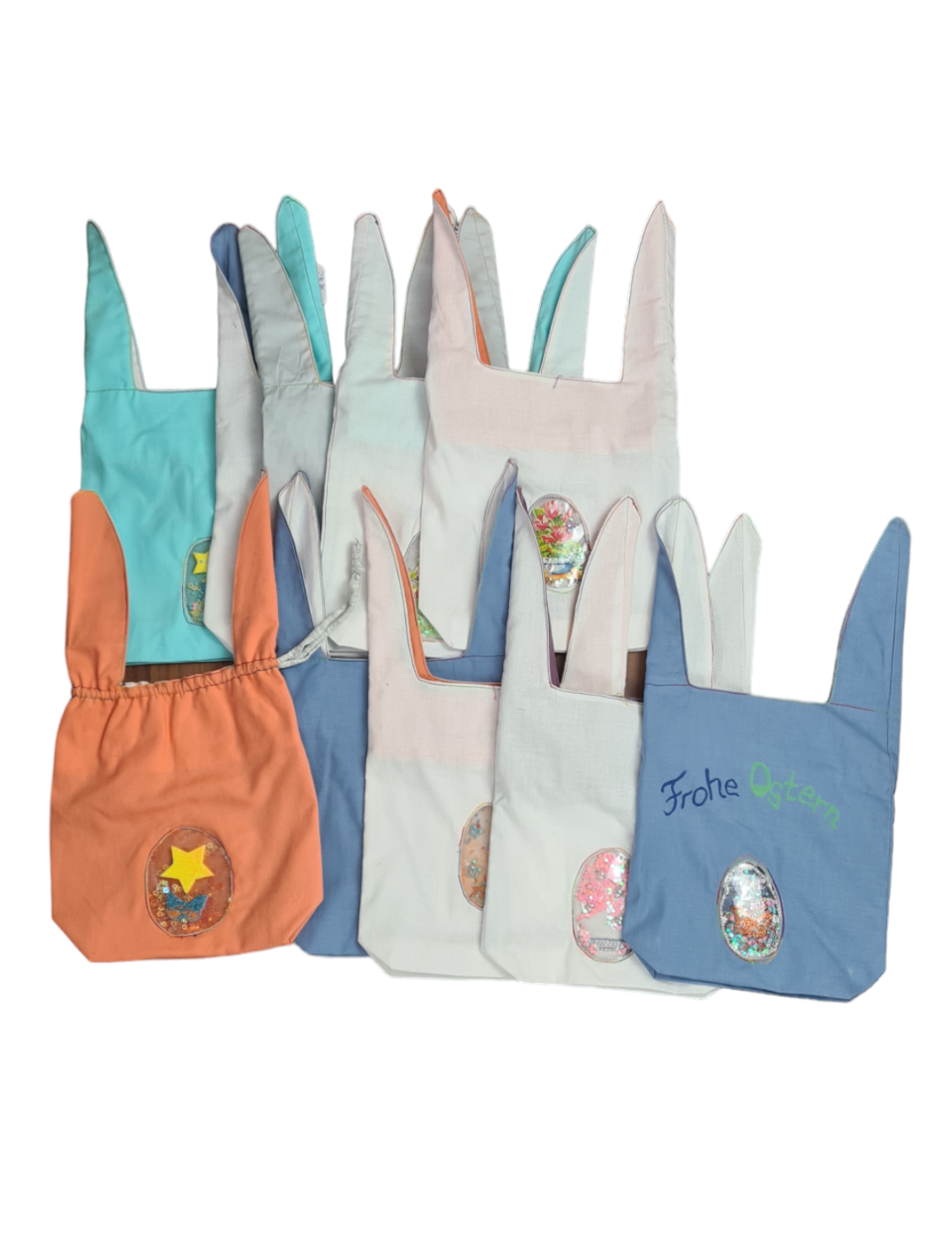 Osterbeutel aus Baumwolle, geschlossen wird über ein Jerseyband