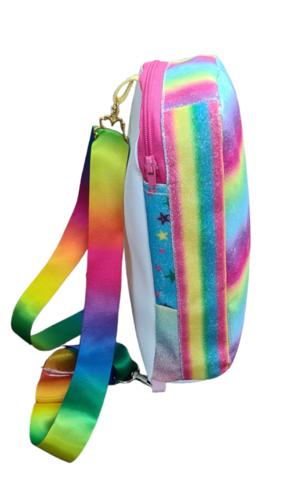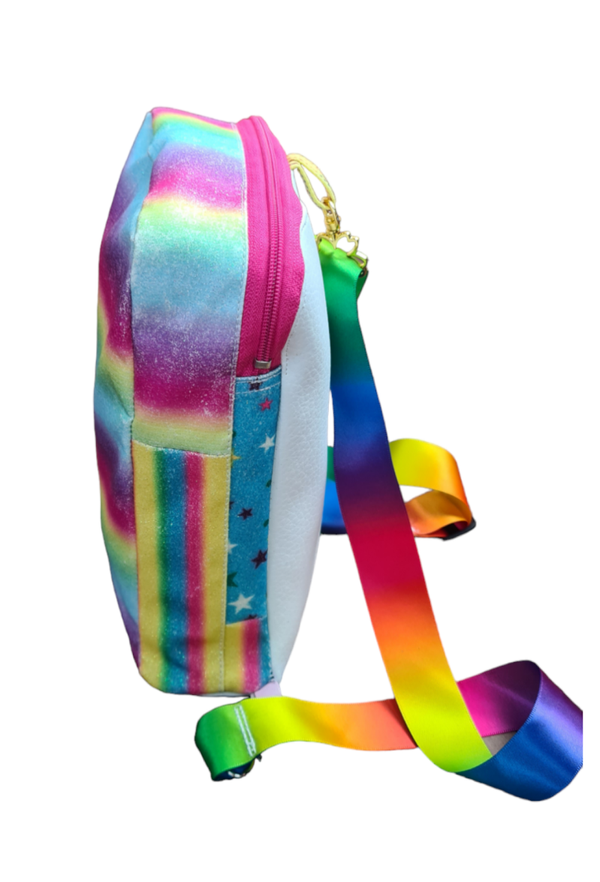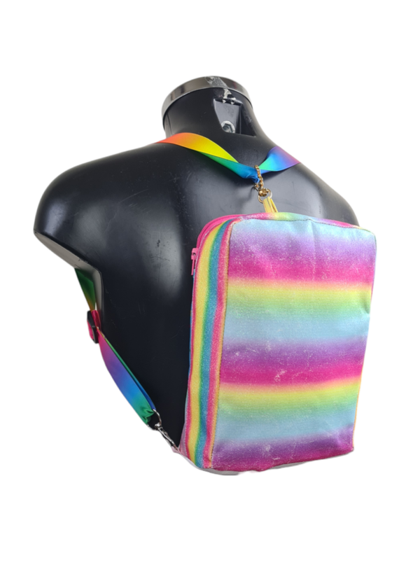 Hauptfarbe Pink - Regenbogen Glitzer - vorne , Hinten ist Weißes Kunstleder..