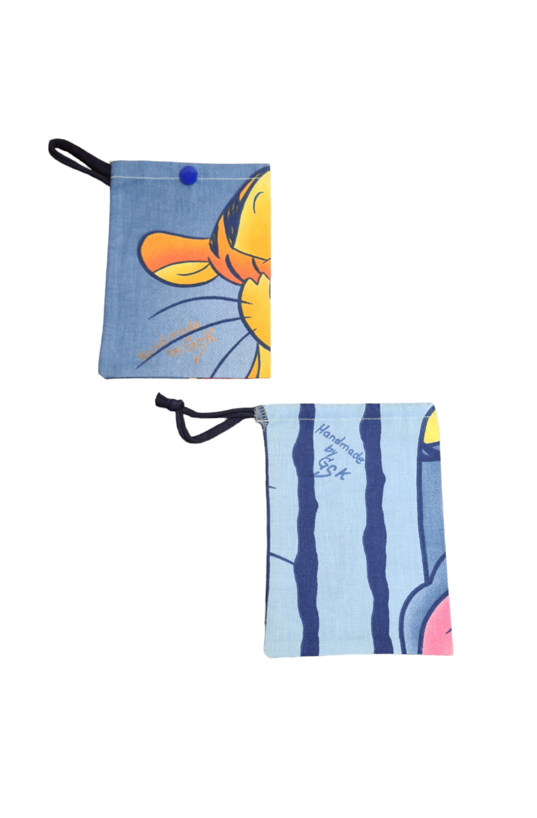Variante 1 : 2 Beutel Upcycling Winnie Pooh Stoff