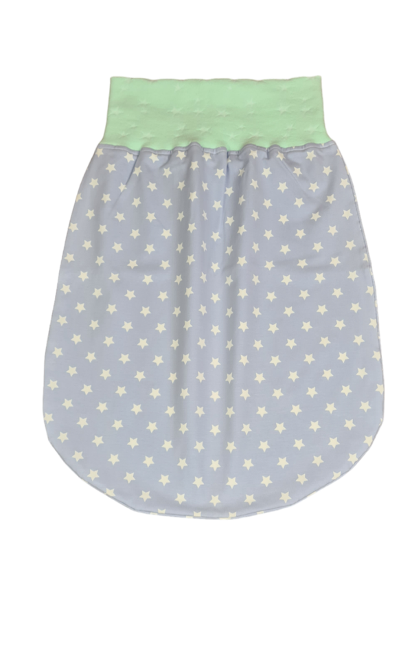 Babyblau mit Weißen Sternen, Bündchen Hellminze und Sterne 9cm Hoch