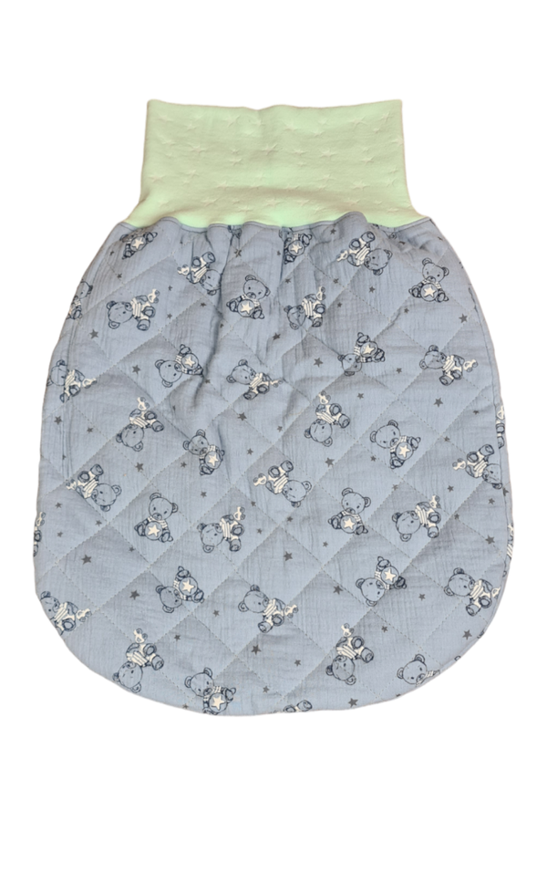 Der Pucksack bietet viel Bewegungsfreiheit, durch den breiten Bund fühlt sich Baby trotzdem geborgen und sicher..
