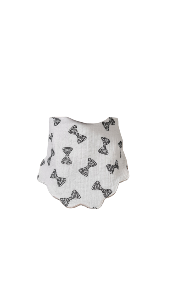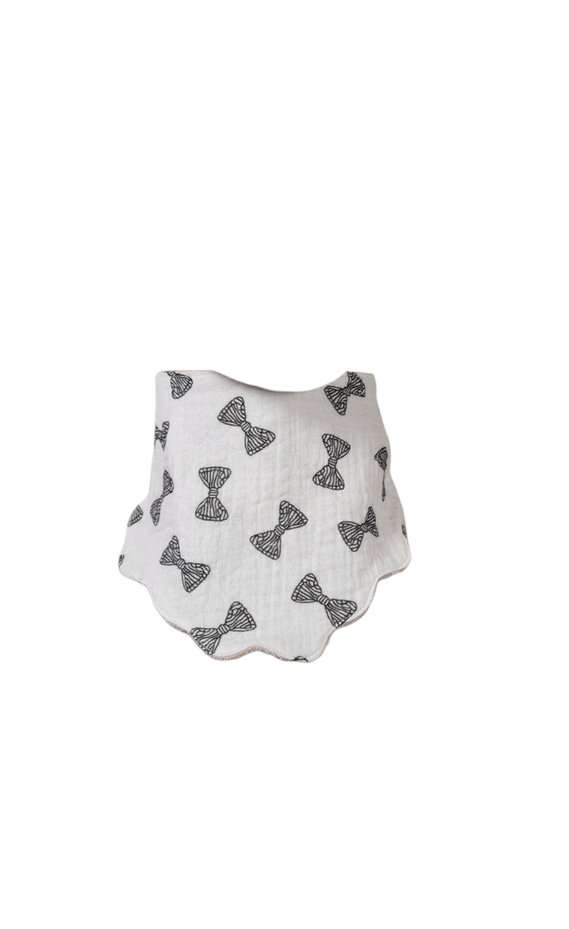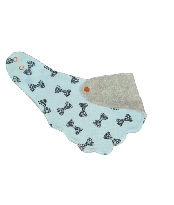 - Frottee Beige Uni + Musselin Weiß Motiv Schleifen , Weiße Plastik Druckknöpfe, Form Abgerundet ,Modell 1