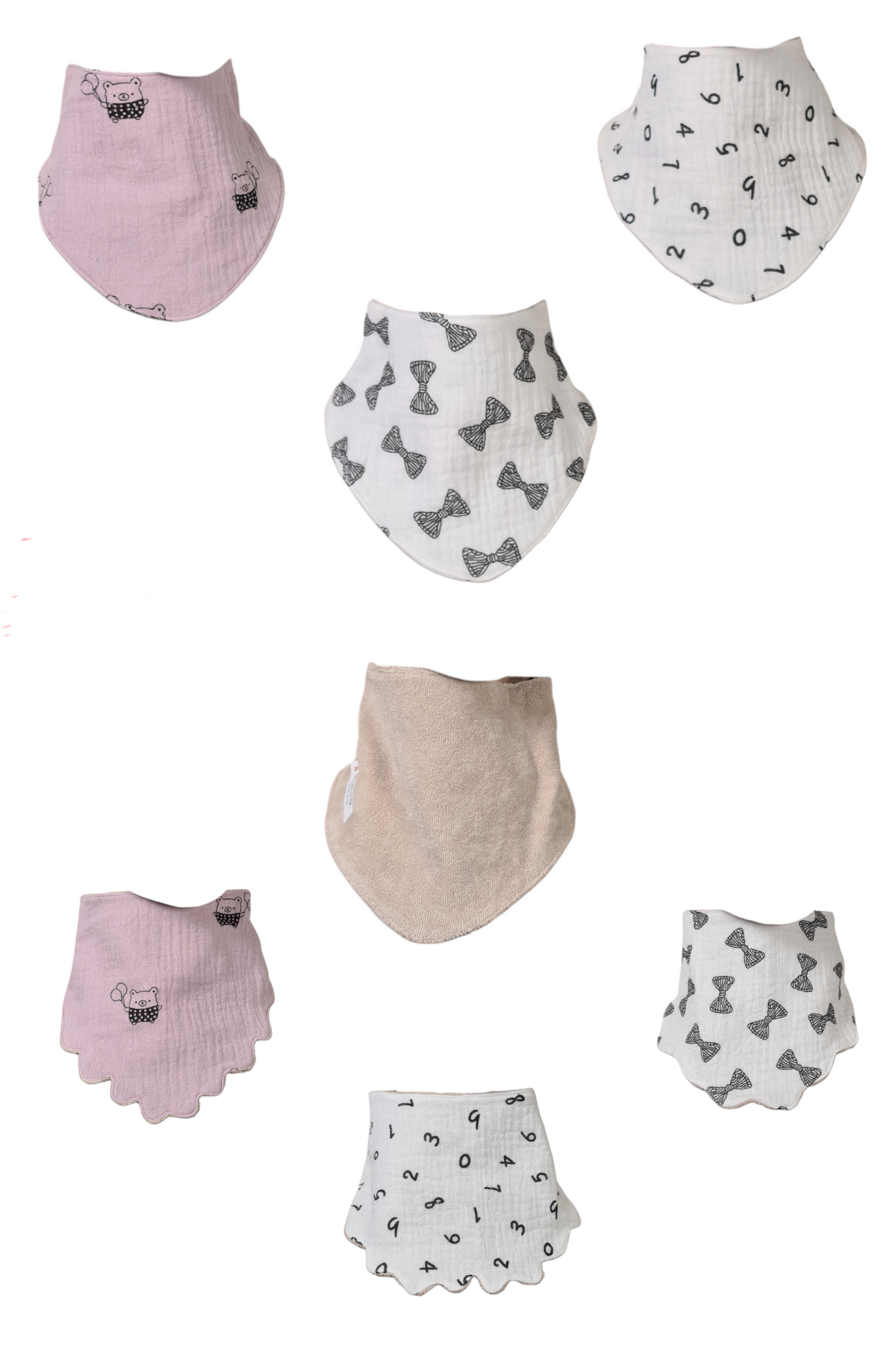 Durch die Materialien Musselin und Frottee haben die Tücher eine hohe saugfähigkeit super für die Zeit wo die Kleinen Zahnen und sehr viel Speichel abgeben..