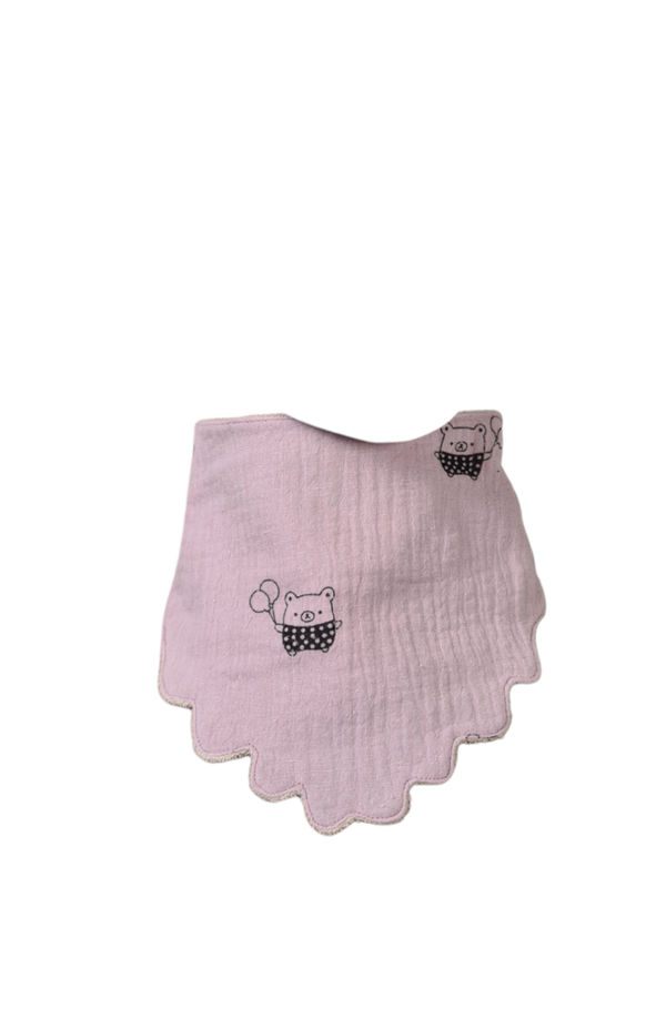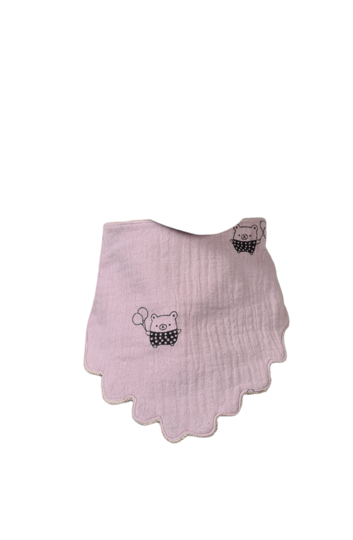 - Frottee Beige Uni + Musselin Rosa Motiv Teddy mit Luftballons, Rosa Plastik Druckknöpfe, Form Wellen, Modell 6