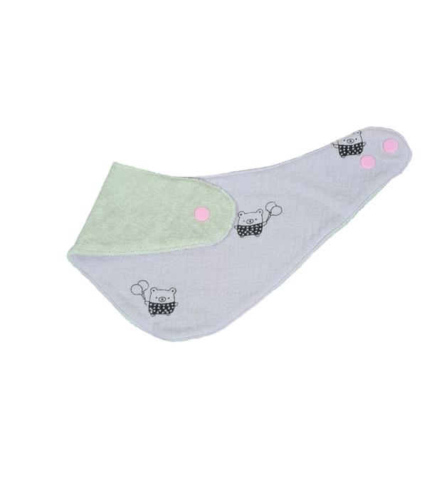 - Frottee Beige Uni + Musselin Rosa Motiv Teddy mit Luftballons, Rosa Plastik Druckknöpfe, Form Abgerundet, Modell 2