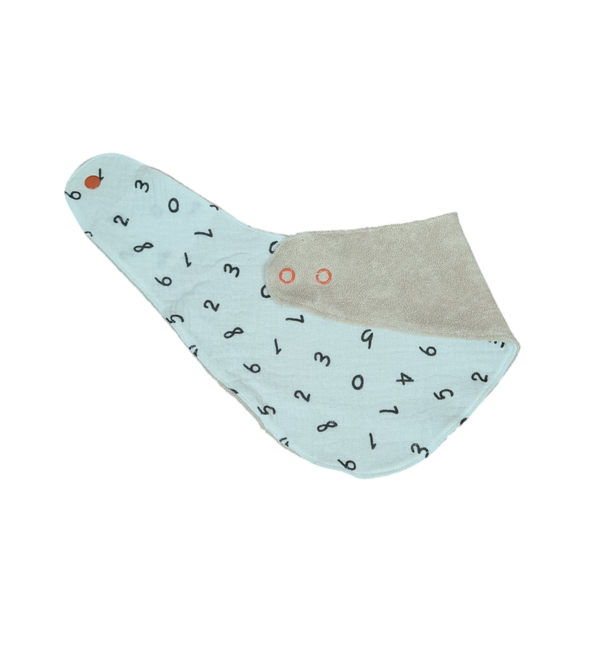 - Frottee Beige Uni + Musselin Weiß Motiv Zahlen, Orangene Jersey Metall Druckknöpfe, Form Abgerundet, Modell 3