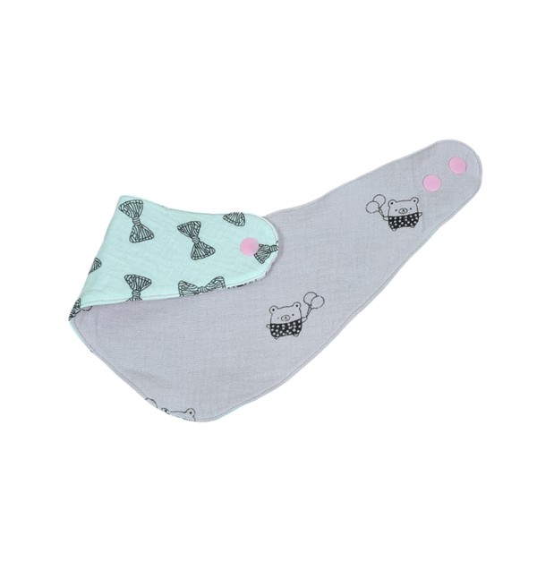 - Musselin Rosa Motiv Teddy m. Luftballons + Musselin Weiß Motiv Schleifen, Rosa Plastik Druckknöpfe, Form Abgerundet, Modell 7