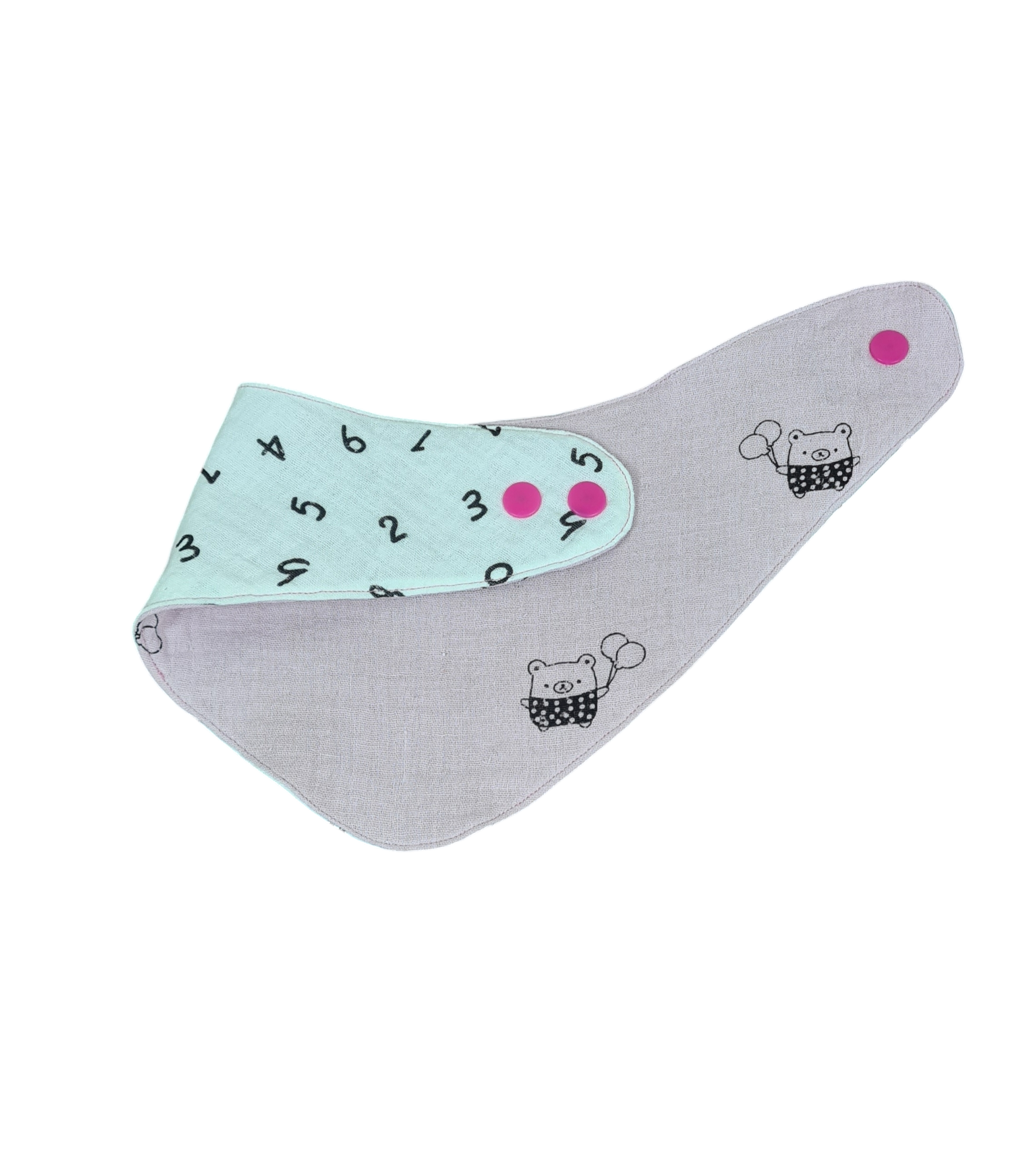 - Musselin Rosa Motiv Teddy m. Luftballons + Musselin Weiß Motiv Zahlen, Pink Plastik Druckknöpfe, Form Abgerundet, Modell 8