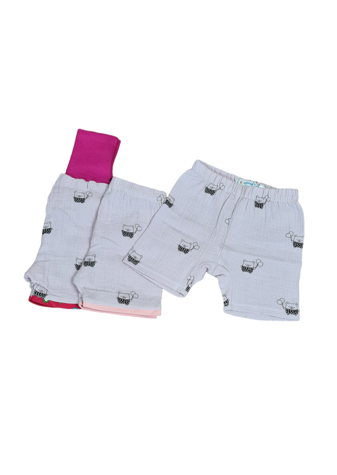 Hier habe ich für den Sommer leichte Musselin Pants in Altrosa mit Teddybär genäht..