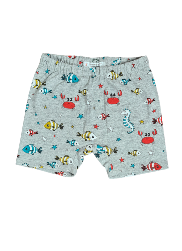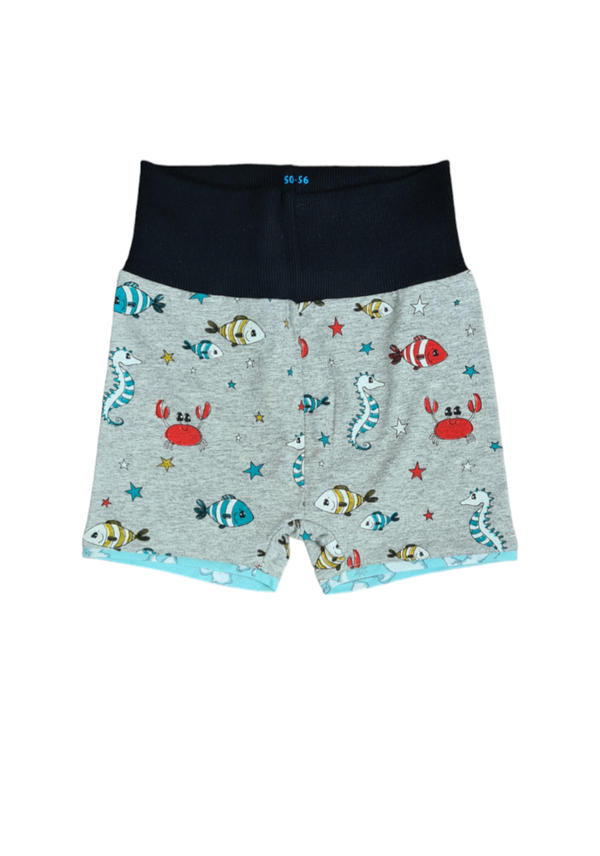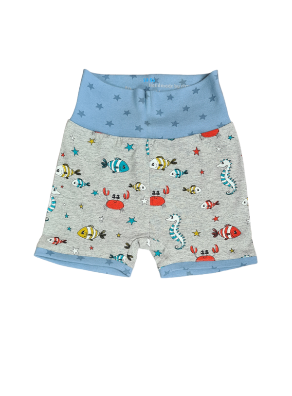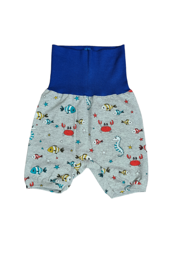 Hier habe ich aus Grau Merliert Baumwolljersey Motiv Meerestiere Pants für den Sommer genäht.