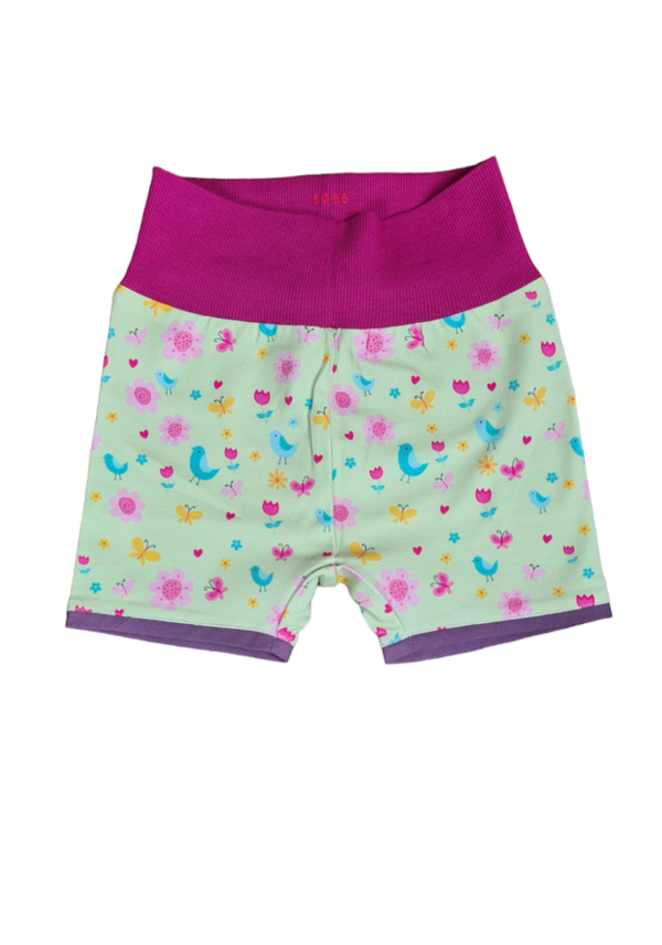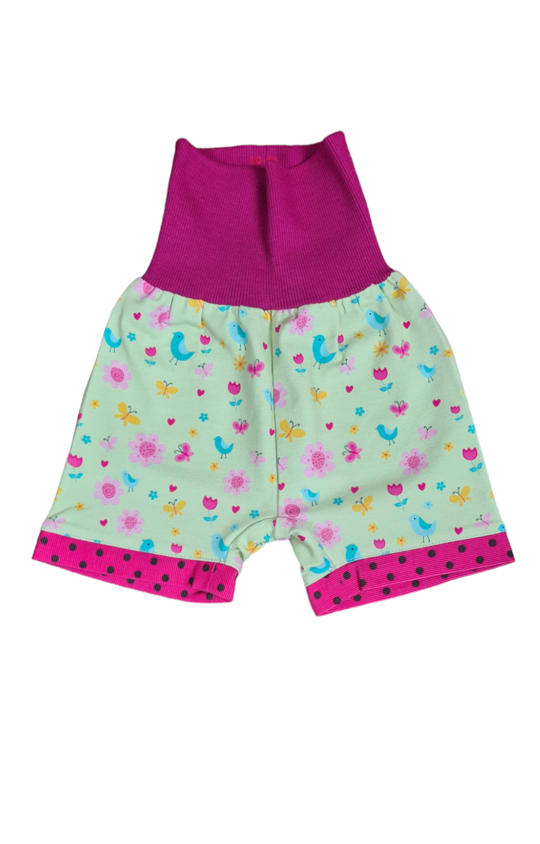 Hier habe ich aus Lichtgrüner Baumwolljersey Motiv Frühlingsvögel Pants für den Sommer genäht.