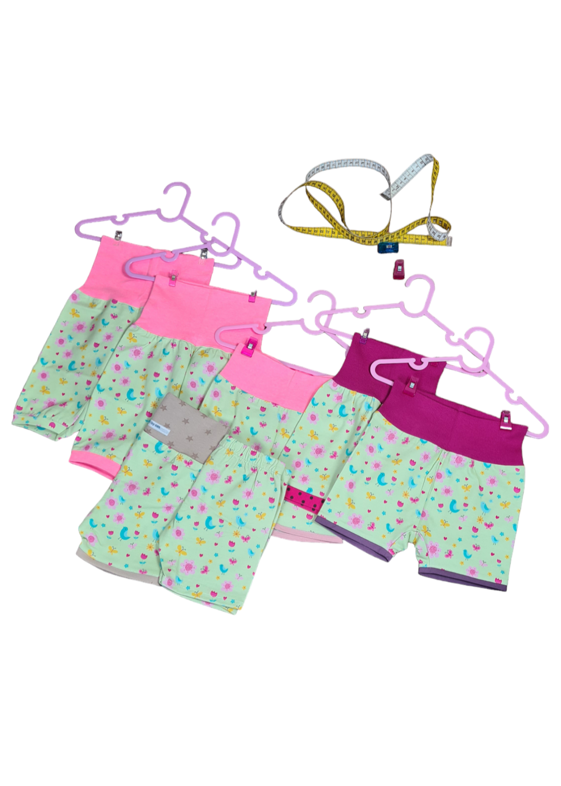 - Bund mit eingezogenen 2cm breitens Gummiband, Saum 1cm breit abgesteppt