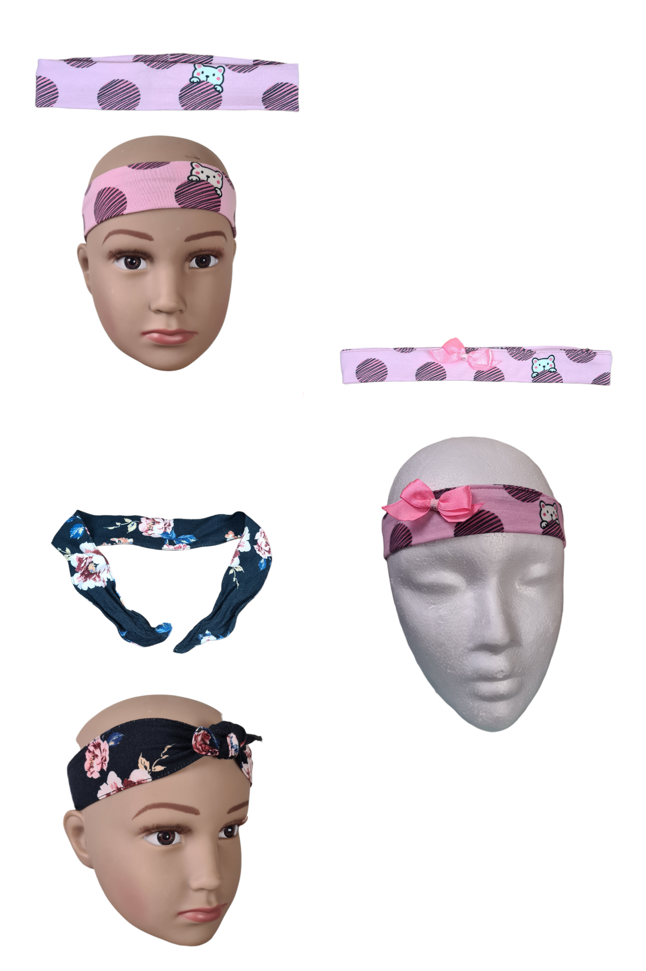 Hier habe ich aus Stoffreste verschiedene Varianten an Stirnbändern gearbeitet..
