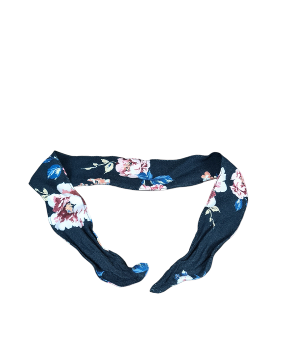 - Blau mit Blumen : Marieneblau Viskose Motiv Blumen, Band mit abgerundeten Enden - 58 cm lang