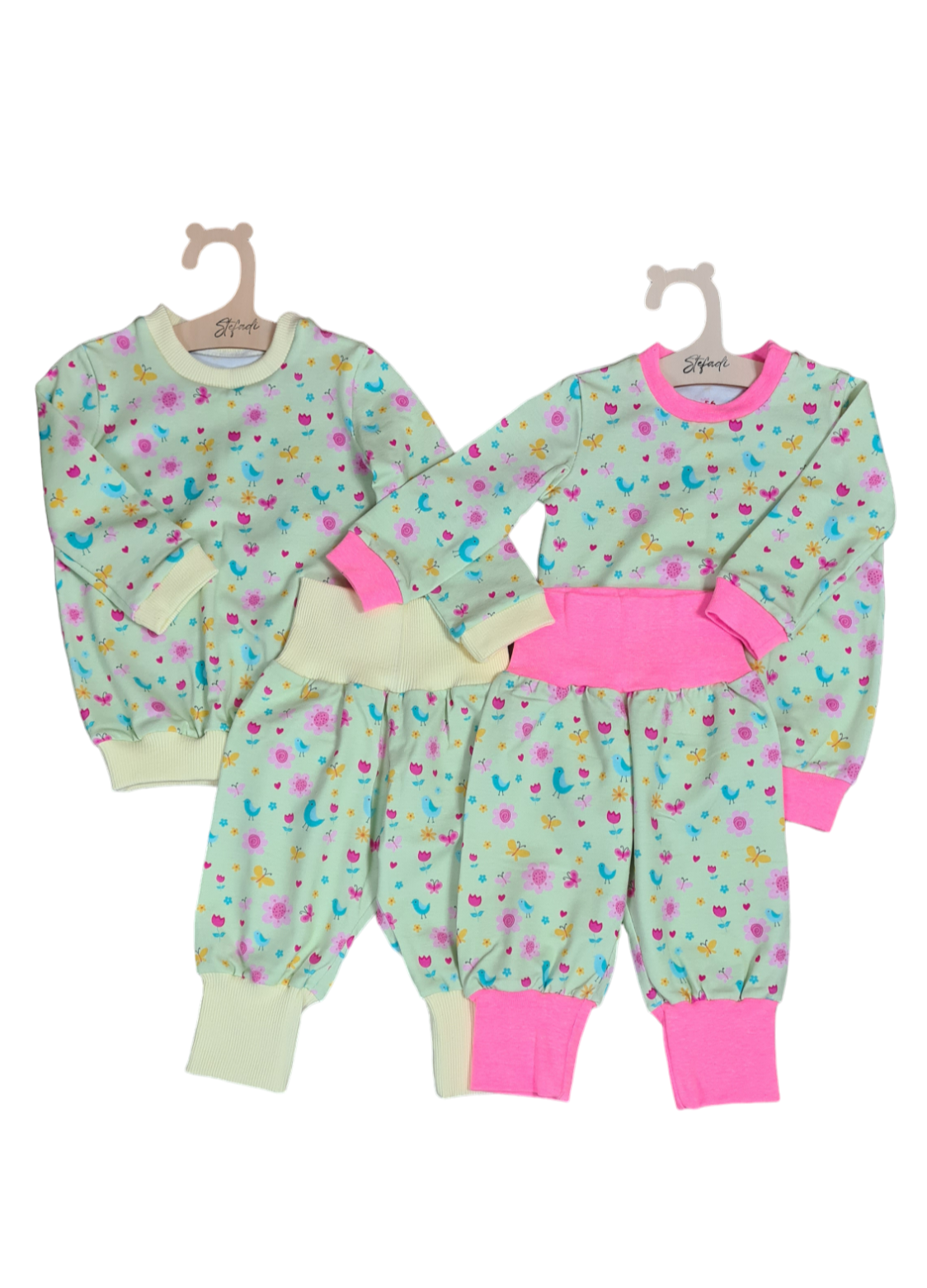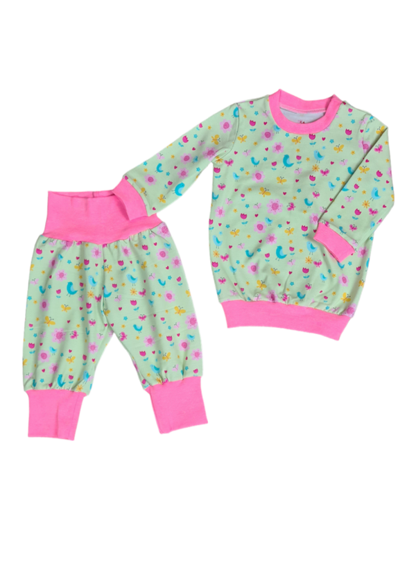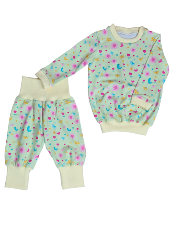 Zweiteiler lang Lichtgrün Frühlingsvögel 56