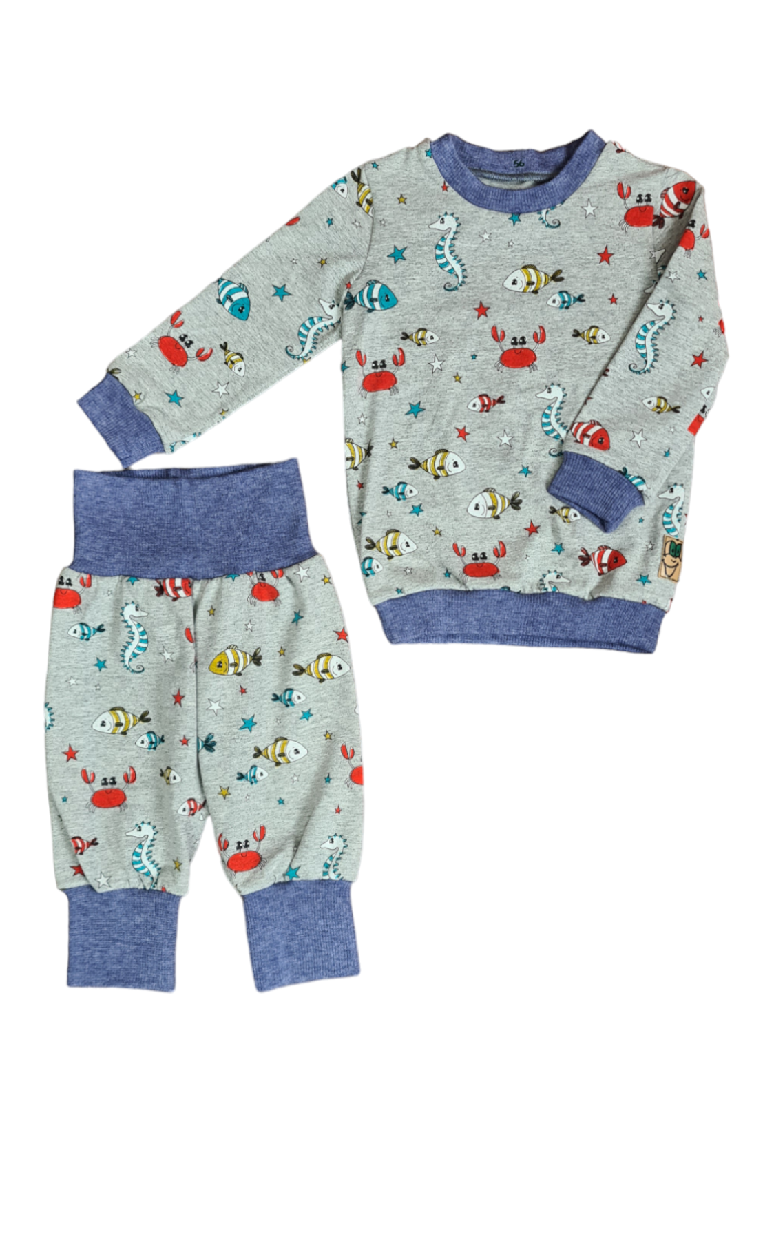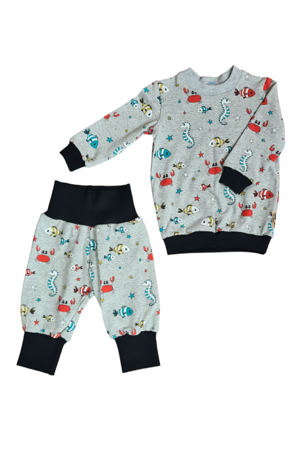 Zweiteiler lang, Grau Meliert Meerestiere 56