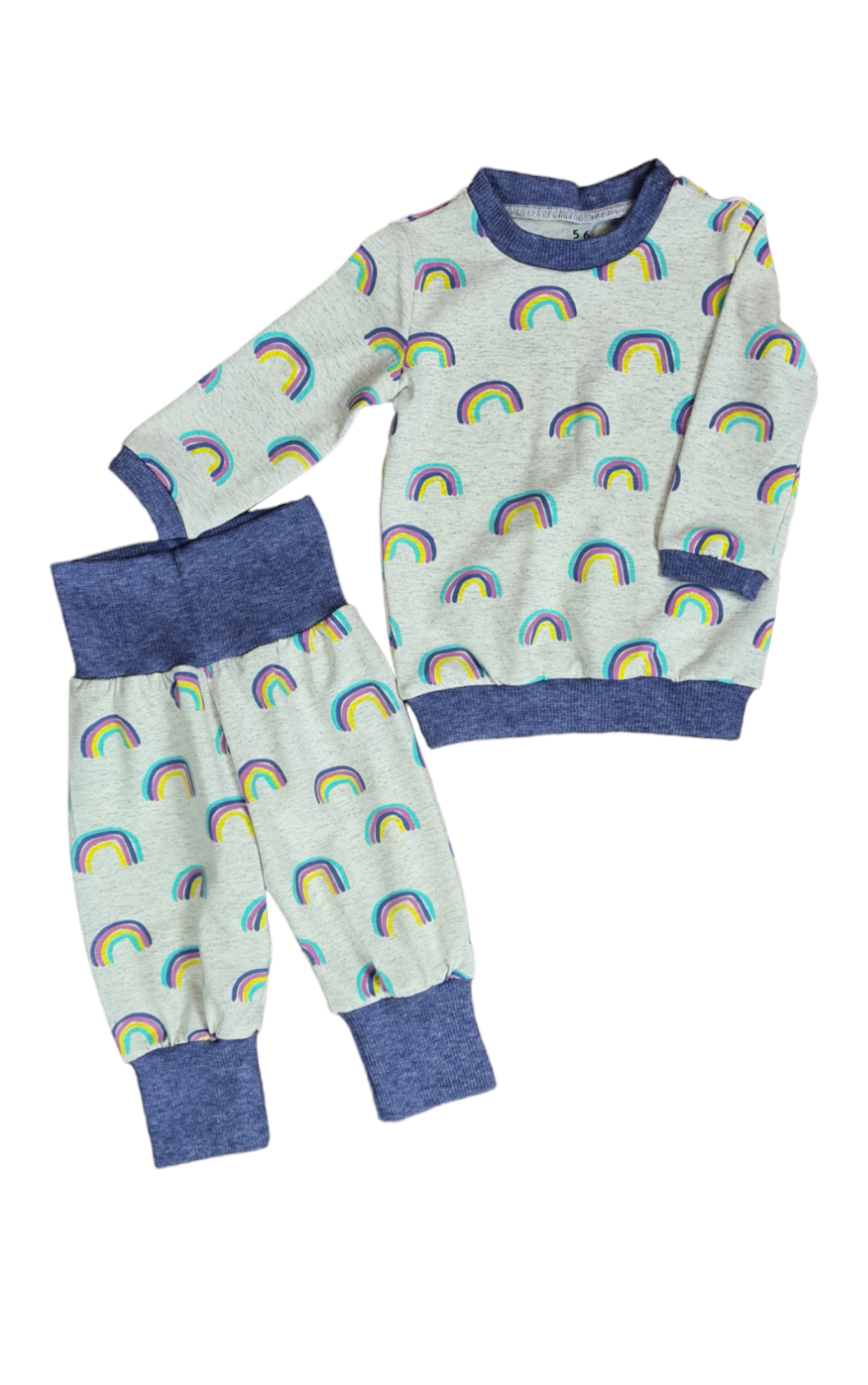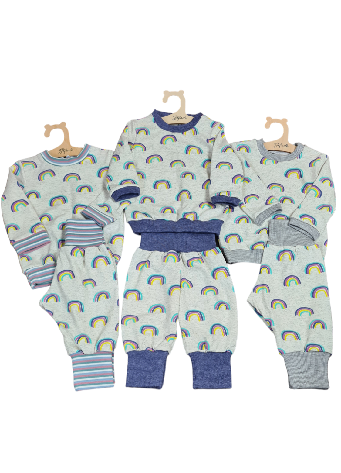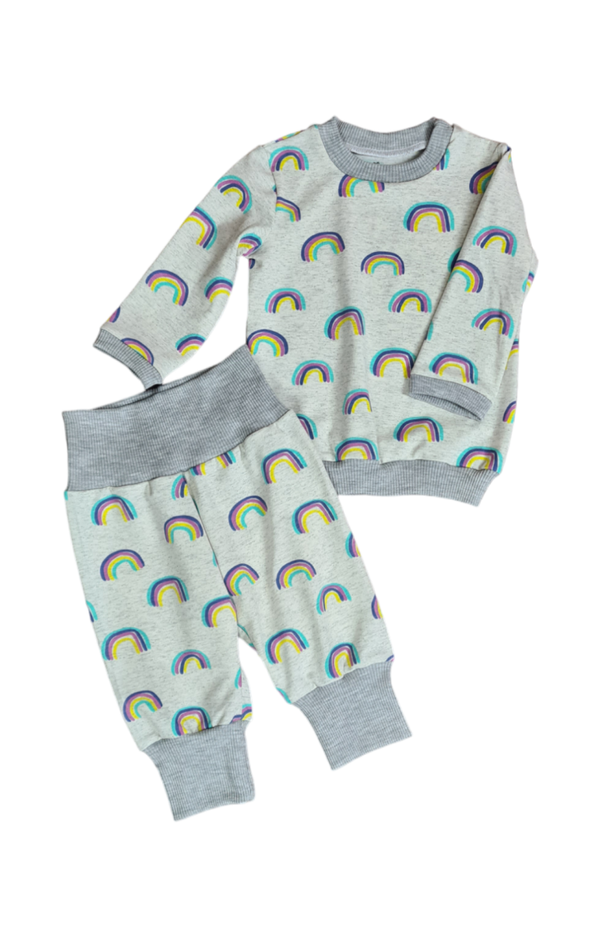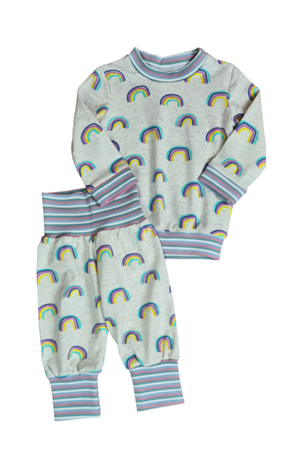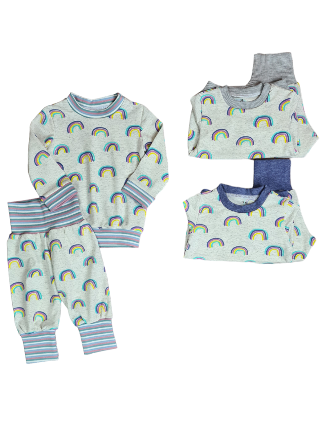 - Regenbogen + Hellgrau : Komplett Bündchen & Säume in Hellgrau