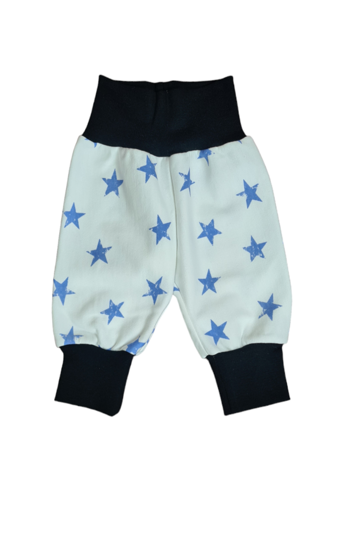- Indigo + Schwarz : Stoff - Weiß Motiv Sterne in Indigo, Bündchen & Beine in Schwarz