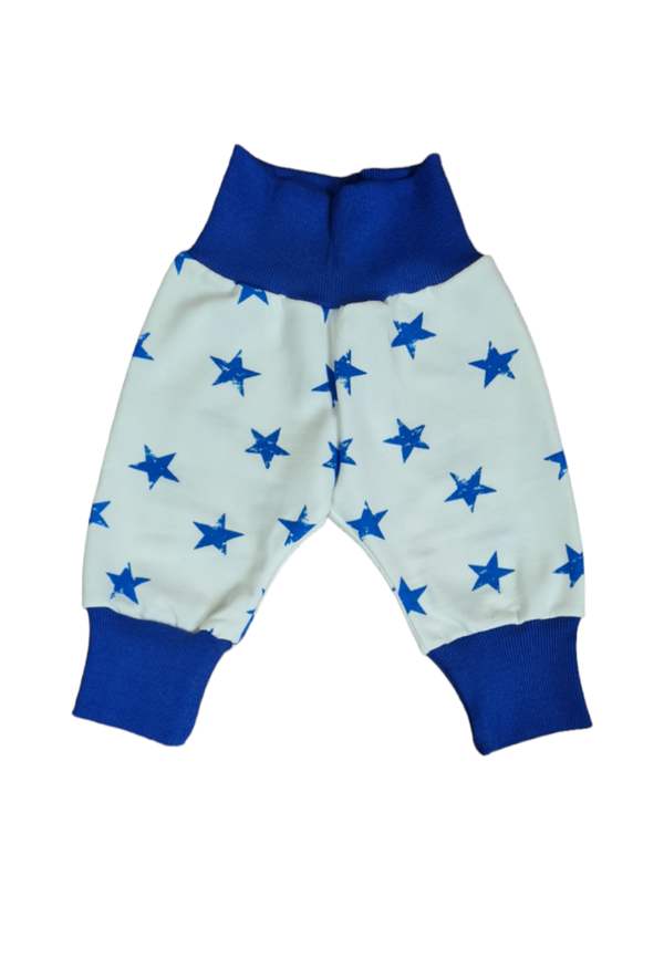 - Royal + Blau : Stoff - Weiß Motiv Sterne in Royal, Bündchen & Beine in Blau