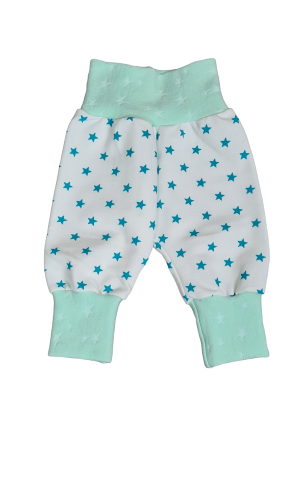 - Petrol + Hellmint : Stoff - Weiß Motiv Sterne in Petrol, Bündchen & Beine in Hellmint Motiv Sterne in Weiß