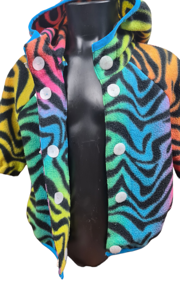 Upcycling aus Alt mach Neu...Hier habe ich eine Fleecedecke verarbeitet die Nie genutz wurde zu 2 Fleece Jäckchen mit und ohne Mütze.