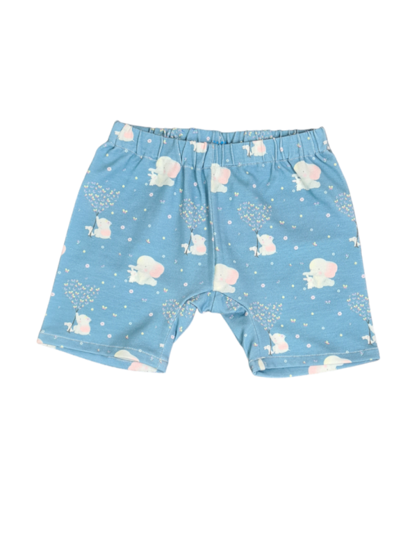 Kurze Hose & Pants aus Babyblaue Baumwolljersey Motiv Elefant & Freund, im Bund wurde ein 2cm breites Gummiband eingearbeitet zum bessern halt beim toben...