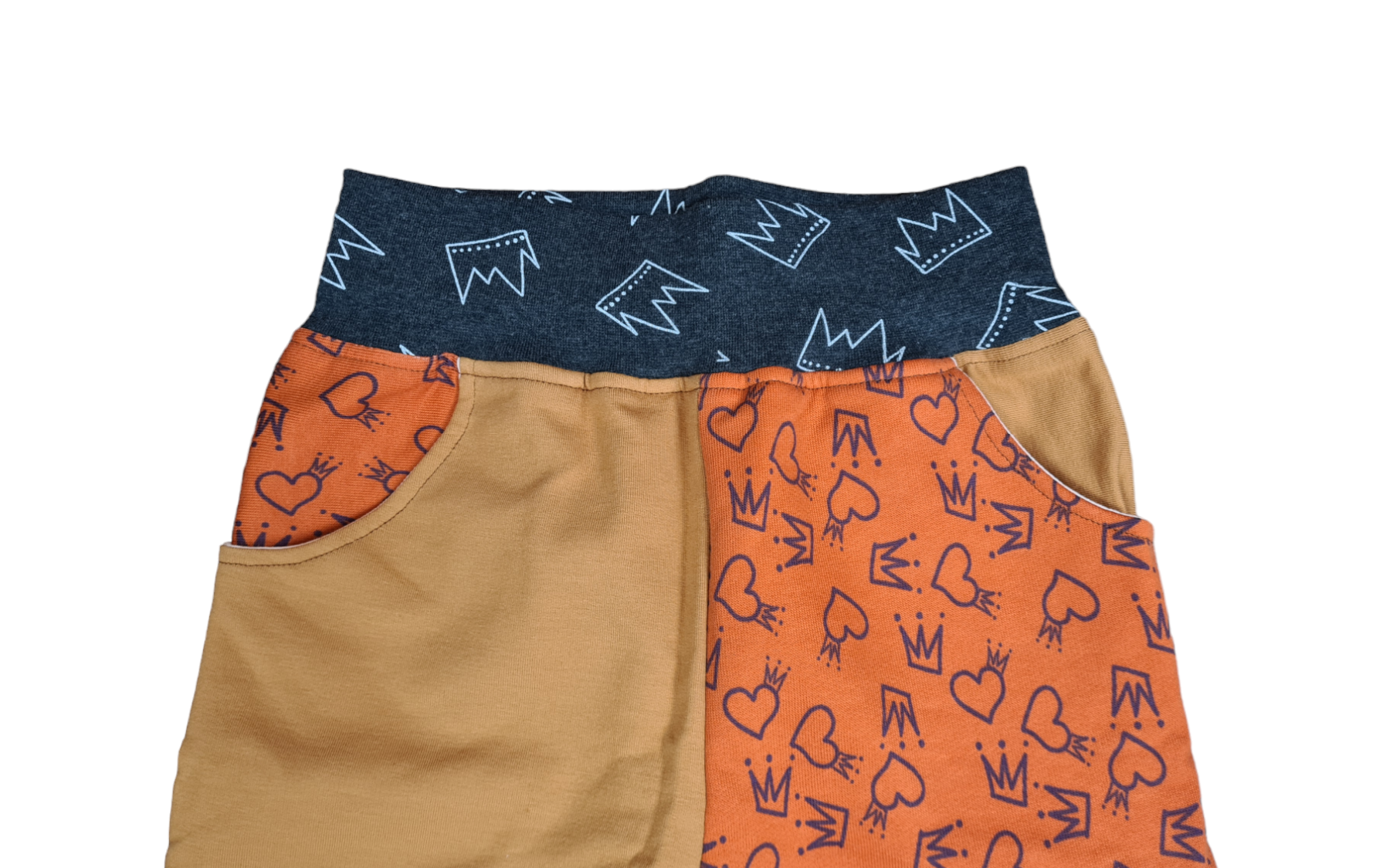 - Herzkrone Krone : Rechtes Bein Haselnuss Tasche Herzkrone,Linkes Bein Herzkrone Tasche Haselnuss. Bündchen in Anthrazit Motiv Krone, Bund 6,5 cm & Beine 3 cm breit
