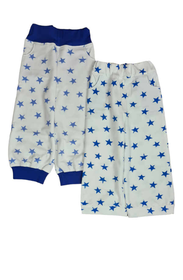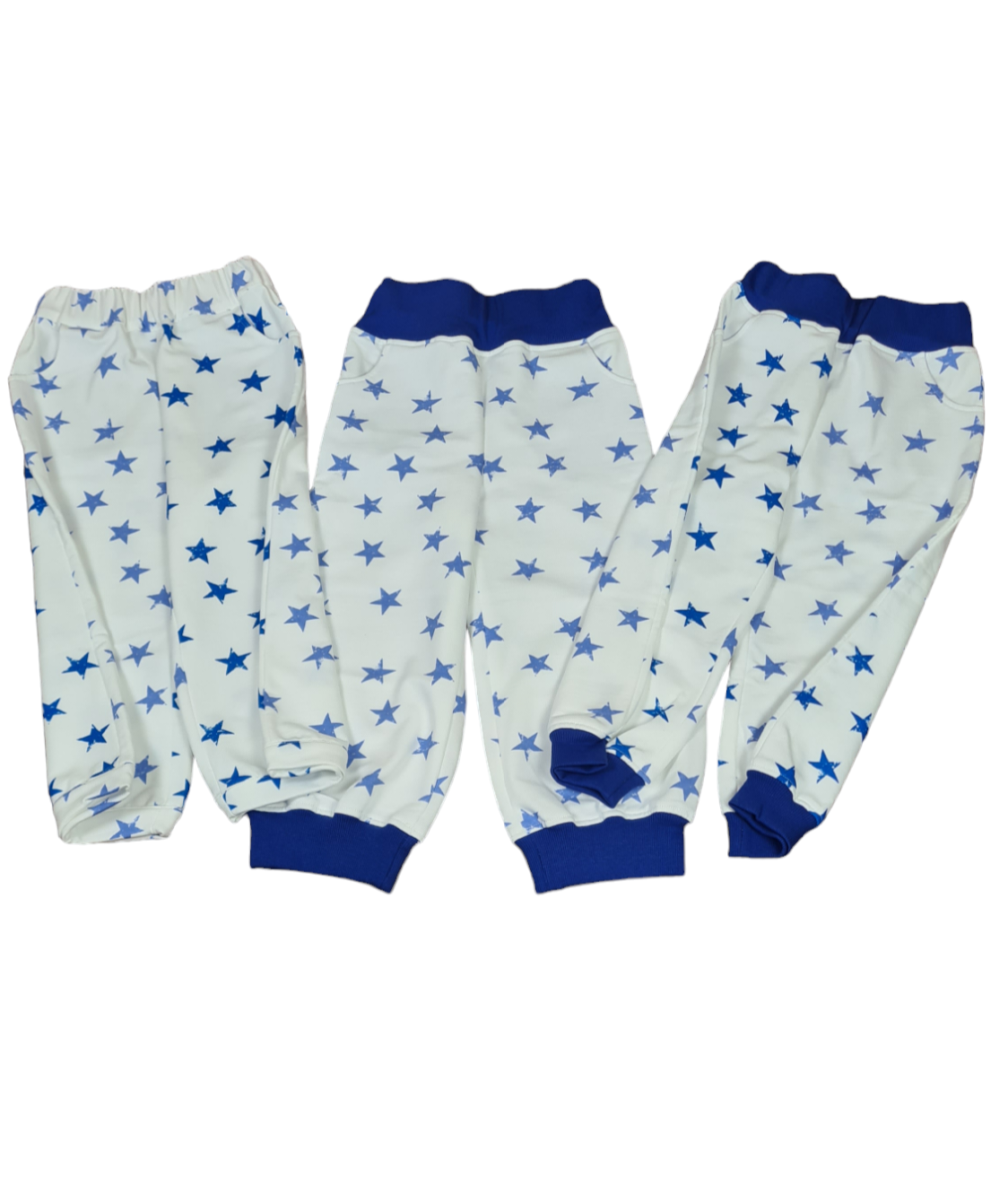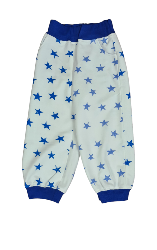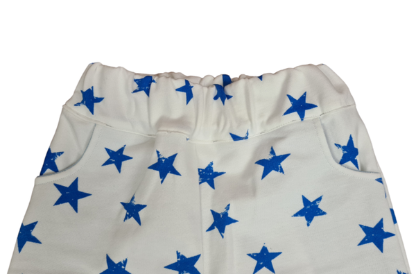 - Indigo Blau : Komplette Hose In Weien Sweat Motiv Indigo Sterne, Bündchen in Blau, Bund 7,5 cm & Beine 5,5 cm breit