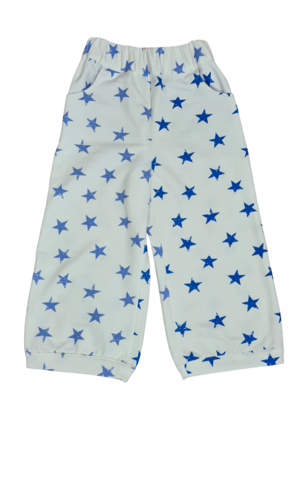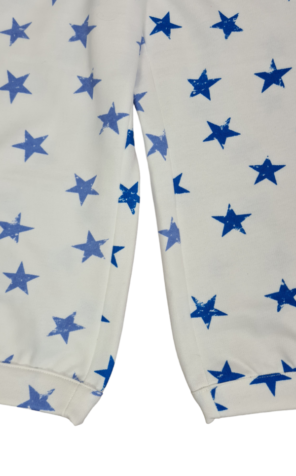 - Indigo : Weißer Sweat Motiv Indigo Sterne, Komplette Hose - Bund 5 cm & Beine 4 cm breit