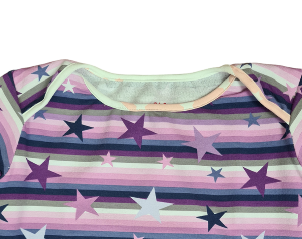 - gestreift Lila : French Terry Lila Motiv gestreift + Sterne,Ausschnitt Weiß - Rosa + Sterne Baumwolljersey Schrägstreifen