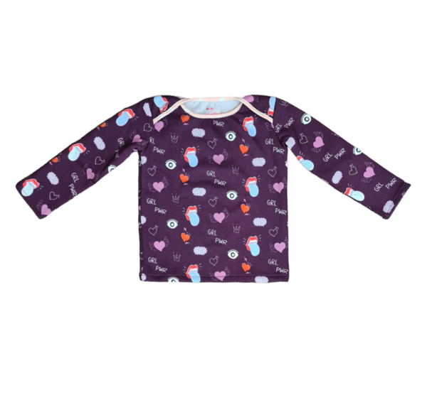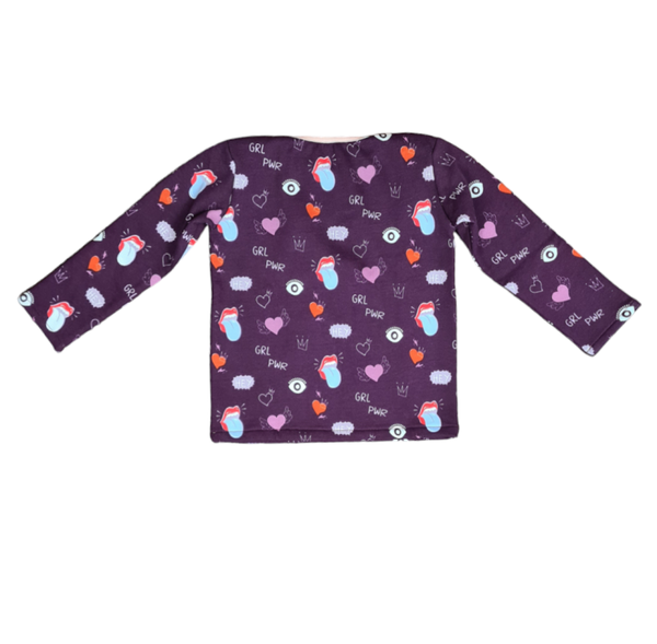 - Power Girl : Sweat in Violette Motiv Power Girl, Ausschnitt Rosa Baumwolljersey Schrägstreifen Motiv Sterne