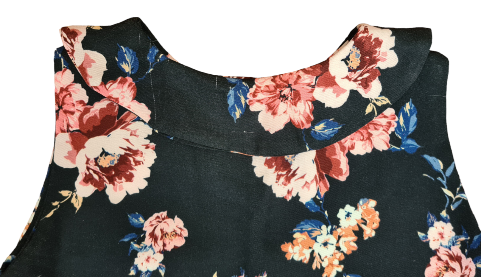 - Blumen : Hier kann der verschluss zwischen Reißverschluss und Druckknöpfe gewählt werden.... Am Halsausschnitt habe ich ein Rundkragen angenäht.....Der Beleg innen ist auf Brusthöhe und über die Seitenaht festgesteppt