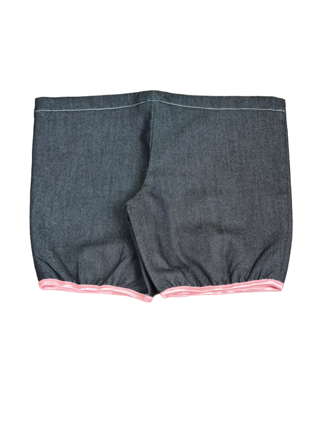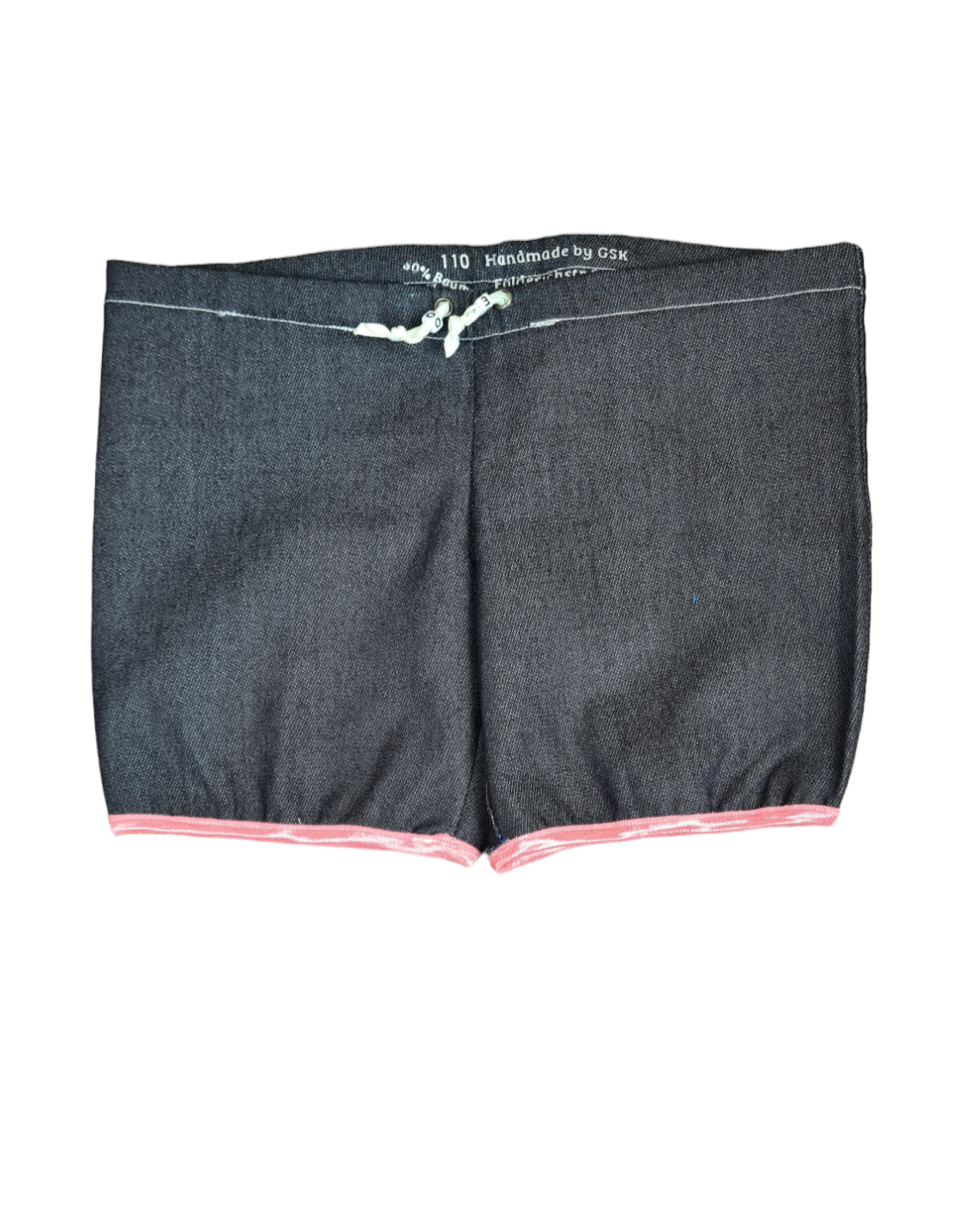 Die Pants habe im Bund ein Satinband eingearbeitet als Schnurre zum Binden mit Perle als schutz.Die Bänder sind in der Hinteren Mittelnaht fest genäht und kurz gehalten das keine möglichkeit bestet zum festhängen...