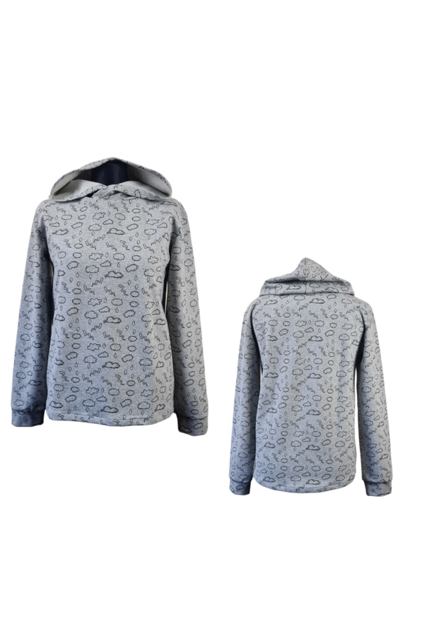 Hoodie komplett aus Sweat Stoff auch der Ärmelsaum
