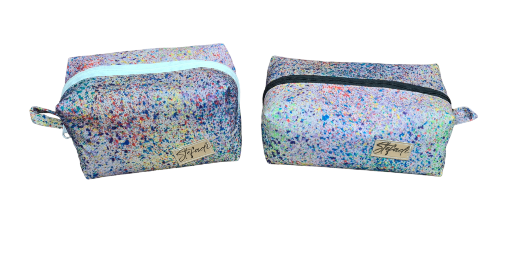 Hier habe ich mein aller erstes eigenes Design auf Wassdichten Stoff drucken lassen und Kosmetik & Federtasche genäht.