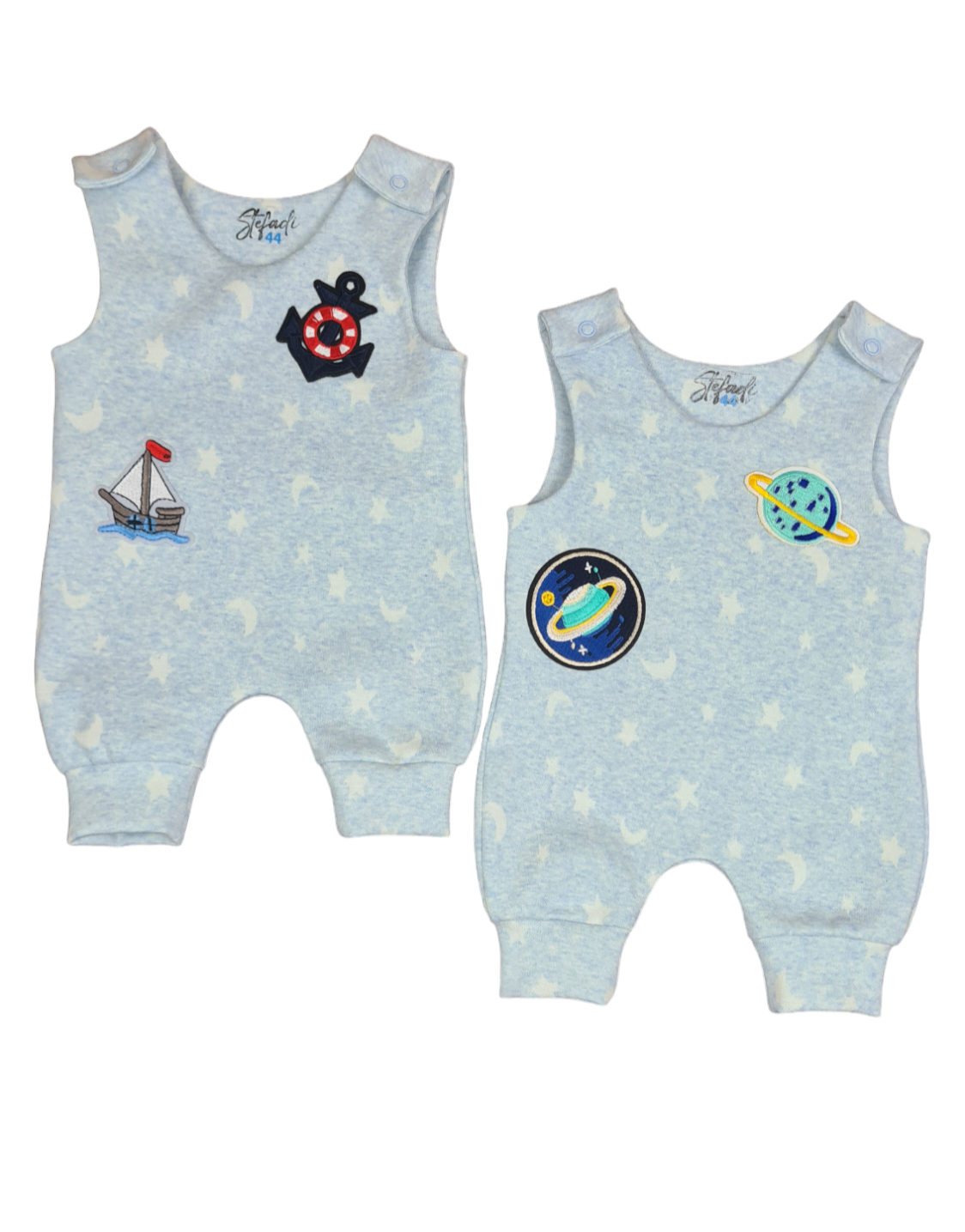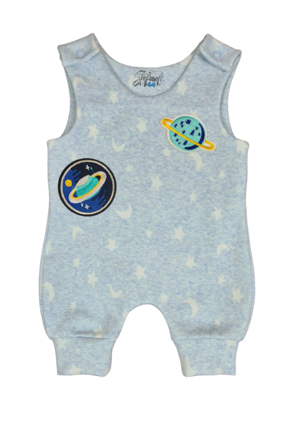 - Weltraum : Strampler Hauptstoff + 2 Planeten Stick-Bügelbilder
