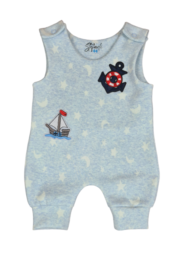 - Meer : Strampler Hauptstoff + 1 Anker & 1 Segelboot Stick-Bügelbild