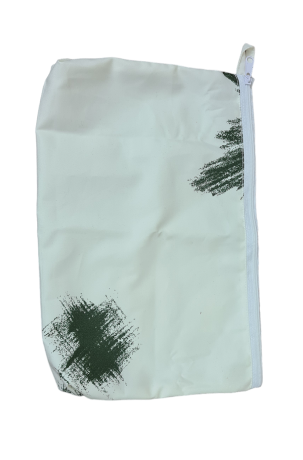 - Modell 2 : Weißer Reißverschluss + Schlaufe , Maße : 28 cm breit , 19 cm hoch , 2,5 cm tief