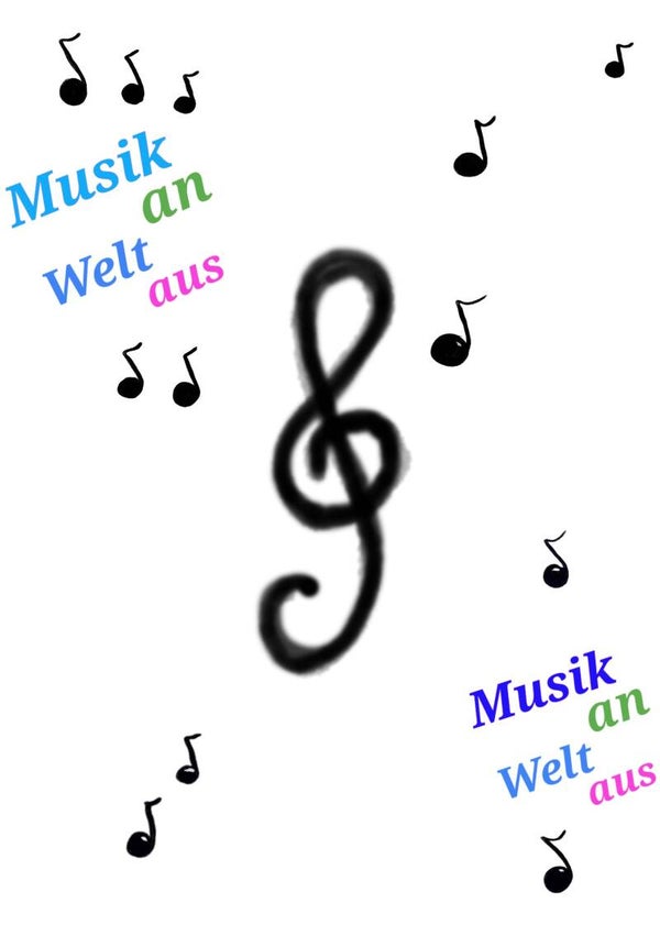 Muster : Noten + Notenschlüsseln , Aufschrift MUSIK AN WELT AUS