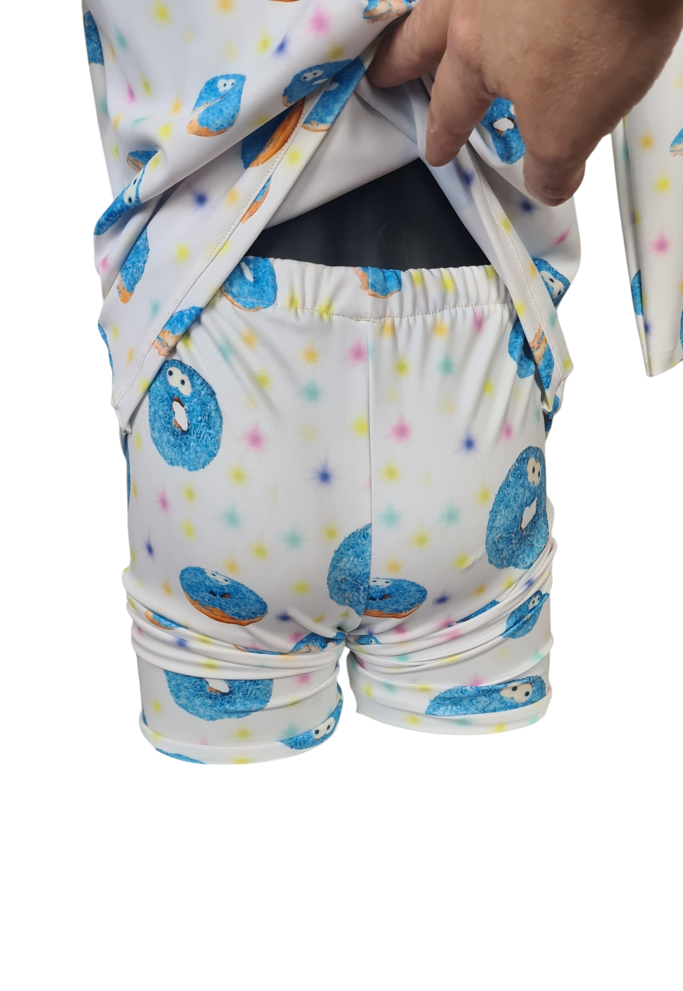 Die Short habe ich auf Radlerhose gearbeitet mit 2cm breiten Gummiband im Bund.