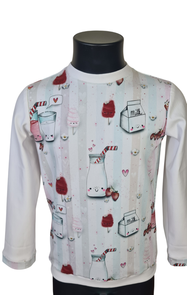 Unikat Pullover Größe 122-128 , Thema Erdbeertraum bunt Pastell gestreift, French Terry