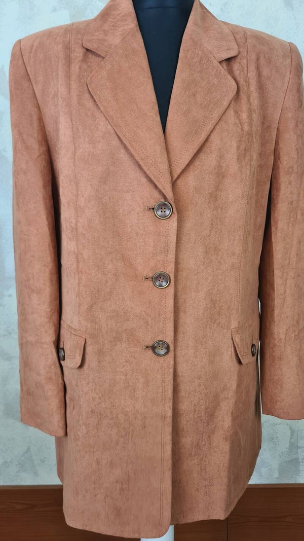 Gebrauchter Damen Blazer aus Wildlederimitat Orange- Braun in Größe 42