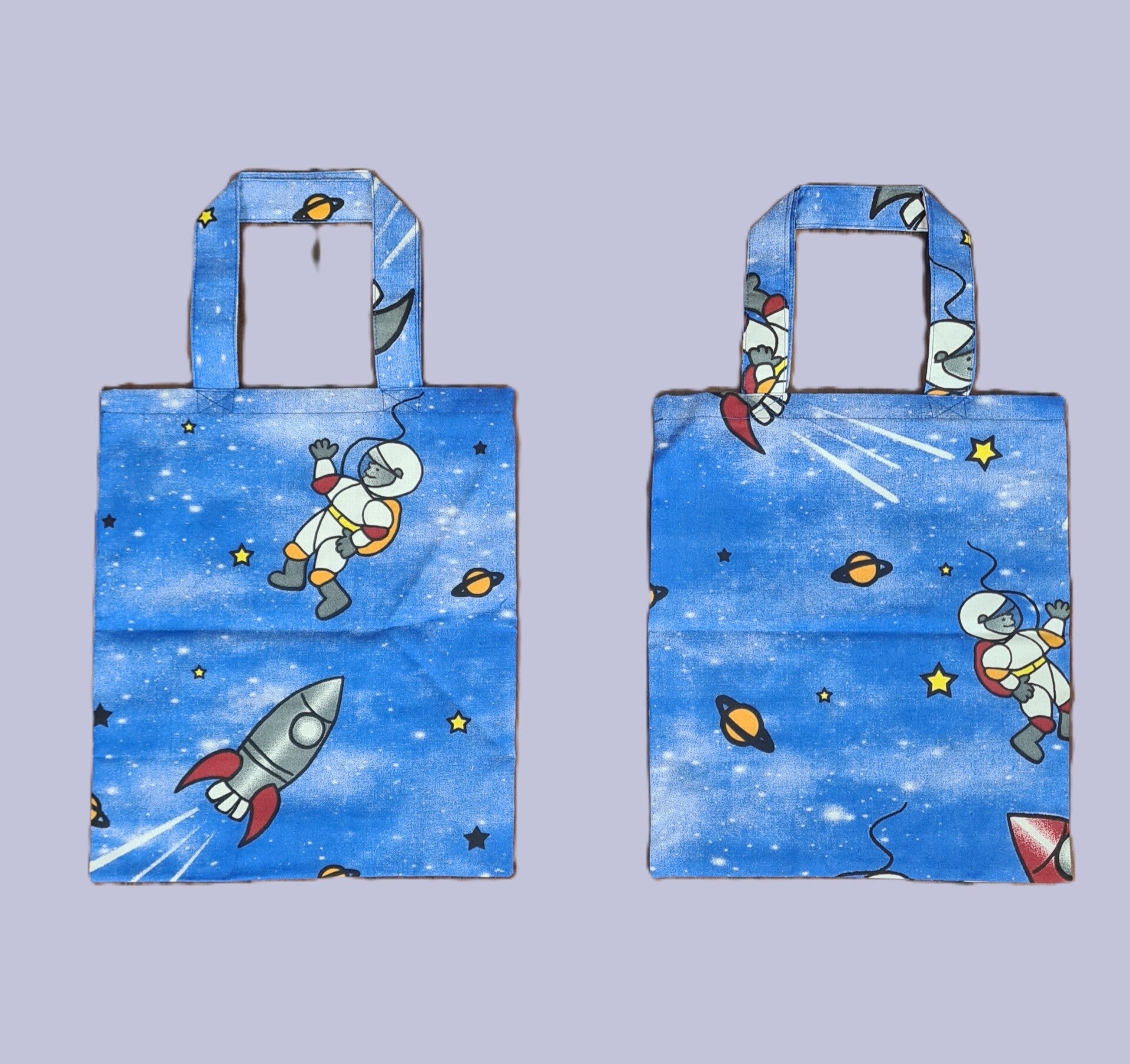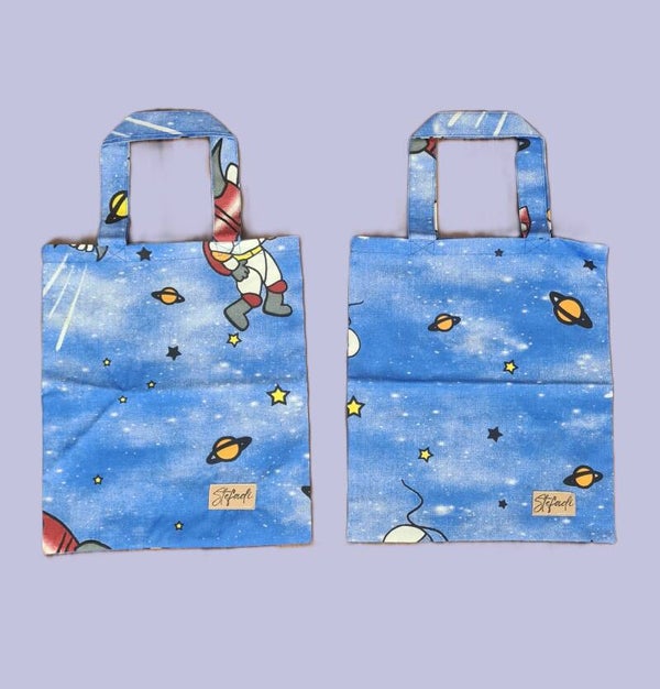 Kinder Set 6 in Blau Weltraum , -Kissen und Kitabeutel