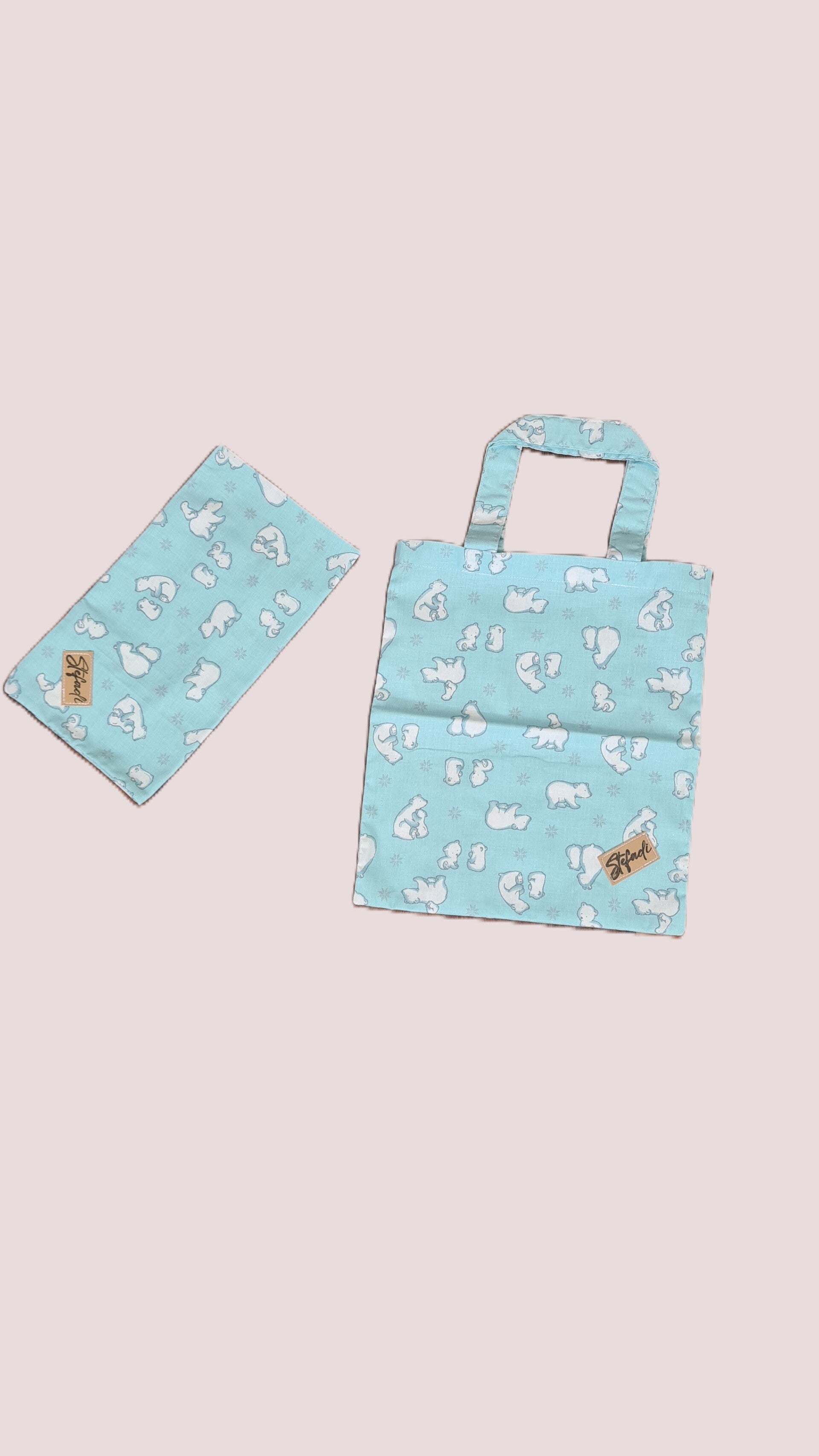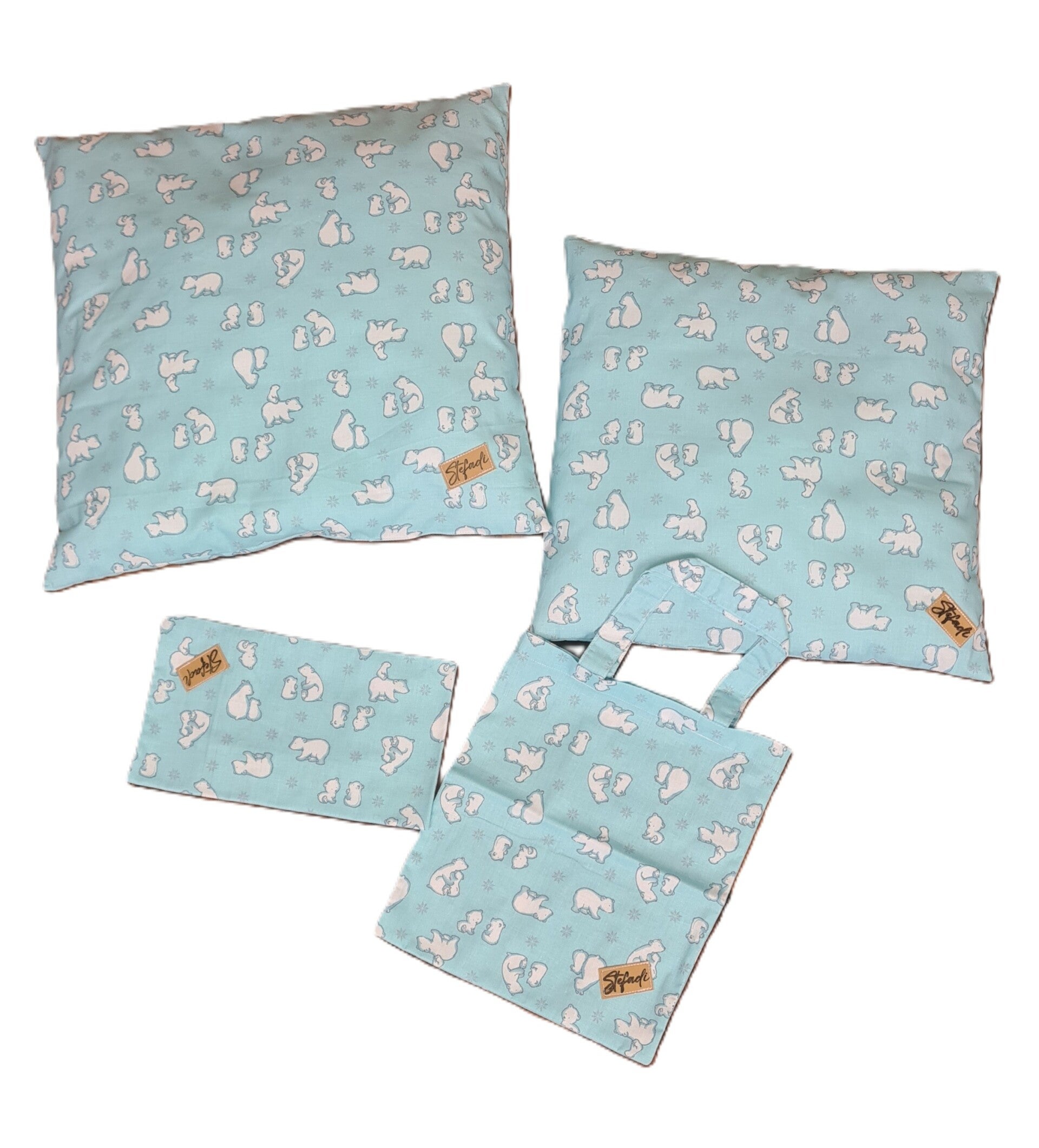 Kinder Set 7 in Hellblau Eisbären , -Kissen und Kitabeutel