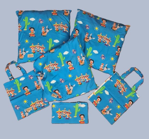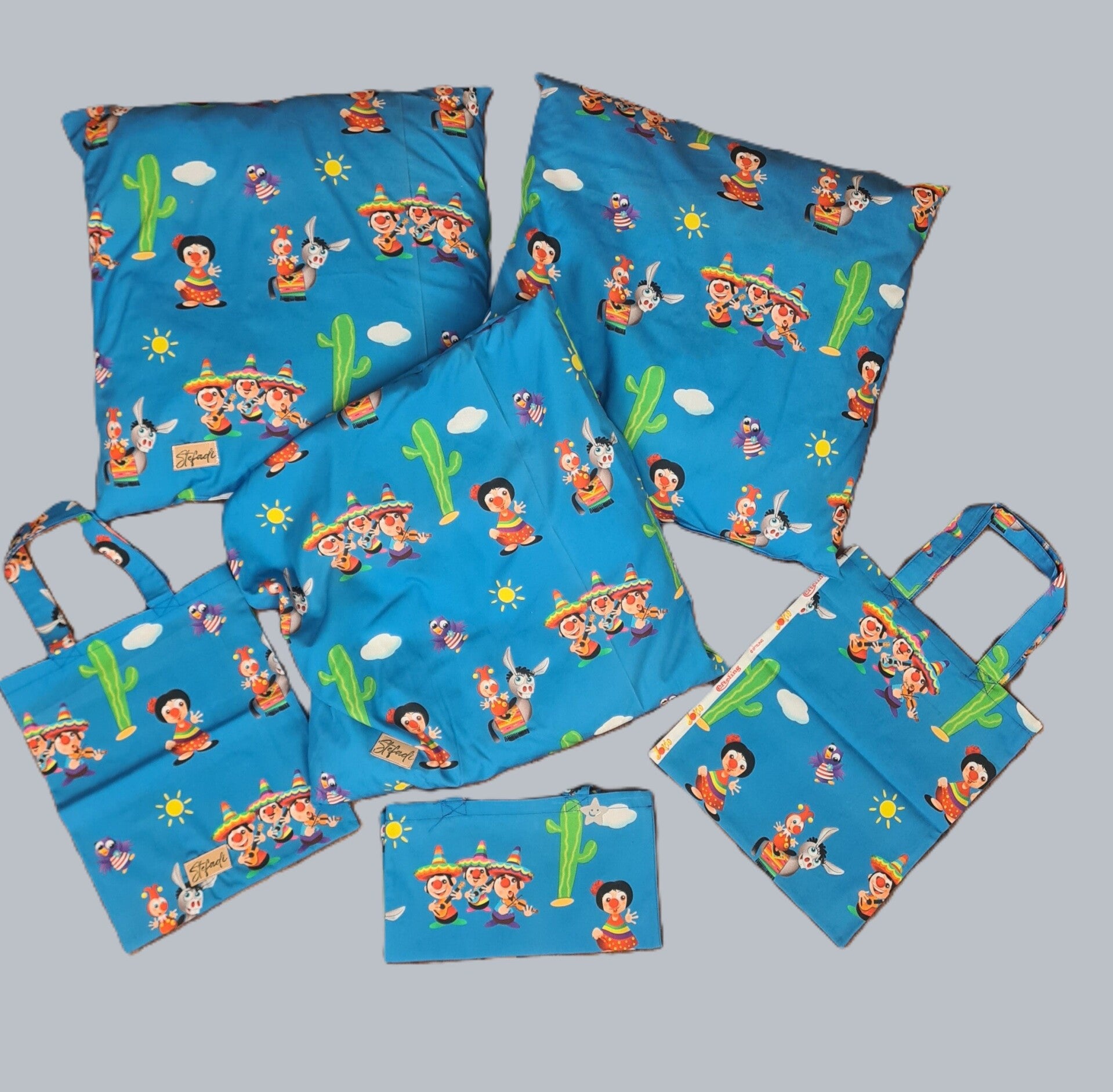 Kinder Set 8 in Blau Siesta Mexico, -Kissen und Kitabeutel