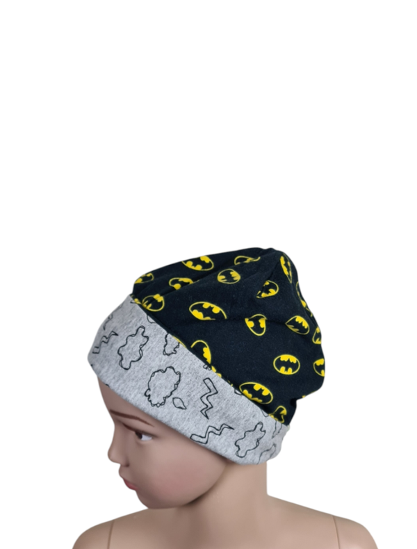 - *Upcycling* Schwarzer Jersey Motiv Batmann + Grau Melierter French Terry Motiv Gewitter - KU 46cm ab 7 Monate und 24cm Höhe
