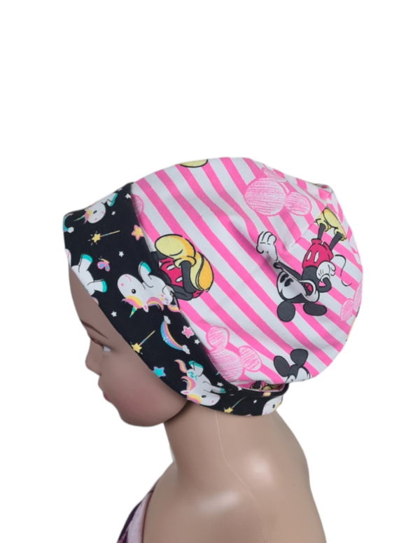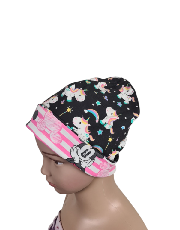- *Upcycling* Weiß Rosa gestreifter Jersey Motiv Micky Maus + Schwarzer Jersey Motiv bunte Einhörner - KU 51cm ab 2 Jahre und 26cm Höhe