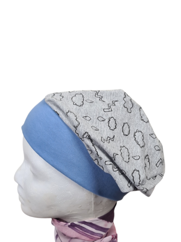 - Mo 6 : Grauer French Terry** Motiv Gewitter, Babyblaues Bündchen ca. 5,50cm Breit, gesamt ca. 27cm Hoch